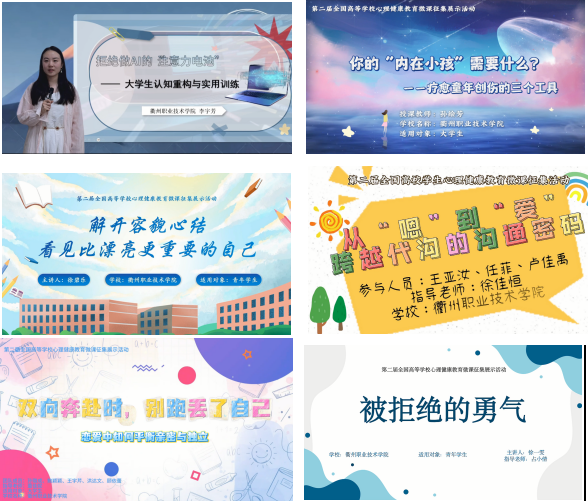 学校组织专家评委对作品进行了严格评审,从选题、内容、教学设计、视频制作等多个维度进行综合评价,最终评选出一、二、三等奖。学生作品中,《从“嗯”到“爱”跨越代沟的沟通密码》《解开容貌心结 看见比漂亮更重要的自己》《双向奔赴时,别跑丢了自己——恋爱中如何平衡亲密与独立》《被拒绝的勇气》等作品脱颖而出;教师作品中,《拒绝做AI的“注意力电池”——大学生认知重构与实用训练》《你的“内在小孩”需要什么?——疗愈童年创伤的三个工具》等作品展现了教师的专业水平和教学智慧。