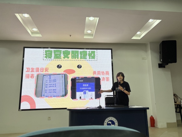 决赛现场气氛热烈,各寝室通过精彩纷呈的展示,充分展现了寝室的独特风采。决赛主要比拼两个部分。一是阐述“家”的故事。寝室成员们借助精心制作的PPT或短视频,配合饱含深情的演讲,生动讲述了属于他们“小家”的故事。从日常安全管理的严谨细致(如规范用电实拍),到卫生值日的井然有序(展示值日表),再到共同制定的文明公约和温馨和谐的相处点滴(集体活动照片),全方位展现了寝室在安全、卫生、文明、和谐四大方面的建设成果,传递了浓厚的“家”文化。二是阐述“家”的特色活力。各寝室成员齐心协力,通过形式多样的才艺展示,如幽默风趣的情景短剧、创意十足的短视频、声情并茂的合唱、活力四射的舞蹈等,充分彰显了寝室的独特个性、成员间的深厚情谊以及积极向上的青春活力。每一个节目都凝聚了室友们的智慧与汗水,赢得了现场观众的阵阵掌声和评委们的高度认可。