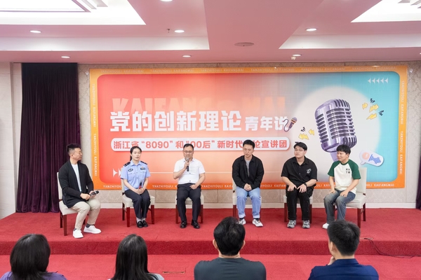 5月22日,受清华大学邀请,党的创新理论青年说——浙江省“8090”和“00后”新时代理论宣讲团进名校系列活动走进清华园。我校00新时代理论宣讲团团长、22级化工装备1班郑德镇与青年宣讲员们以开放麦宣讲的形式与现场师生进行了分享交流。