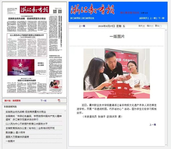 《浙江教育报》2024年9月27日 头版 报道 本报通讯员 张锦平 欧阳洪萍 摄