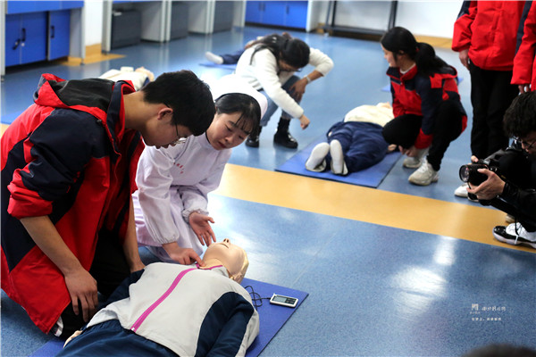 衢州市特殊教育学校的老师们还邀请大学生志愿者将大家感兴趣的扎染、应急救护等课程“搬”进衢州市特殊教育学校。
