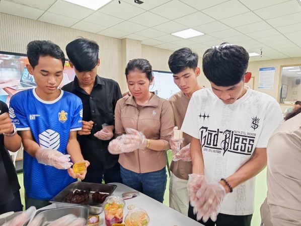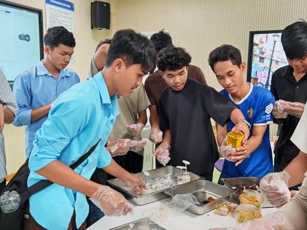 恰逢中秋佳节临近,对初来乍到的柬埔寨学子而言,这个象征团圆的节日,成为了他们感知中华传统文化温暖而美好的第一课。9月29日,一场别开生面的中秋主题活动在校园里温情上演。柬埔寨学子们第一次深入了解了中秋节的传说与习俗,更在食堂工作人员的指导下,亲手尝试制作冰皮月饼。从揉面、包馅到压模成型,每一个步骤都充满了新奇与乐趣。中外学子并肩协作,欢声笑语不断,在互动中迅速拉近了彼此的距离。来自柬埔寨的留学生PHAL SAMPHORS在活动中显得格外兴奋。她捧着自己制作的月饼,开心地分享道:“这是我第一次在中国过中秋节,月饼非常美味,中国的传统文化太有魅力了!我很喜欢衢州职业技术学院,这里的老师和同学都非常友好。我期待在这里学习先进的专业知识,也希望能更多了解中国的历史和文化,交到很多中国朋友。”简单的话语,流露出她对未来学习生活的无限向往与期待。