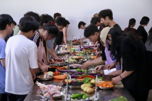 5月11日,师生走进常山县“父亲的水稻田”劳动教育基地,开启沉浸式劳动实践。学生们分组协作,切菜生火、烹制农家饭菜,在炊烟袅袅中体验“一粥一饭来之不易”;午后深入蔬菜种植基地,采摘瓜果、养护作物,与农民交流农耕智慧。田野间的汗水与欢笑,让艺术学子真切体会到“脚踩泥土”的劳动温度。