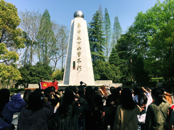 随后,同学们来到府山公园为革命烈士扫墓。站在纪念碑前,同学们怀着无比崇敬的心情,向逝去的先烈们默哀致敬,敬献鲜花,并宣誓明志。默哀时的思绪,是我们和烈士英灵最接近的地方;朵朵白花,寄托着众学子对烈士们的无限哀思;坚定的宣誓声,表达着在场所有人中华民族伟大复兴而努力学习的决心。
