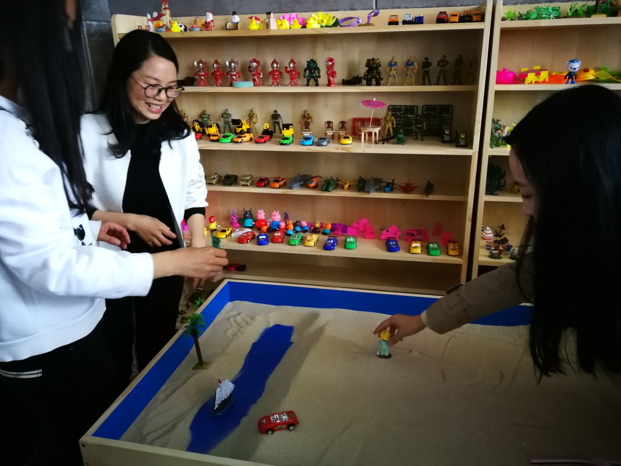 在管老师的带领下,新任教师参观了问吧、放松·咨询吧、沙盘·咨询吧、发泄吧、学习督导吧和团体心理辅导吧等功能区,并体验了各功能室配备的心理专业设备。