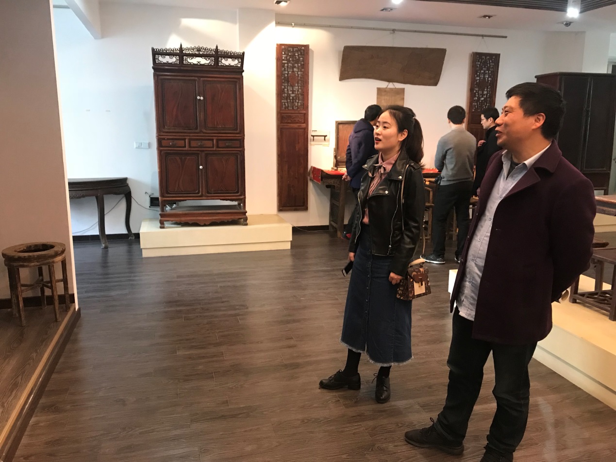 艺术设计学院陆小赛教授带领新任教师参观了设计文化陈列馆的建筑构件和明清家具。