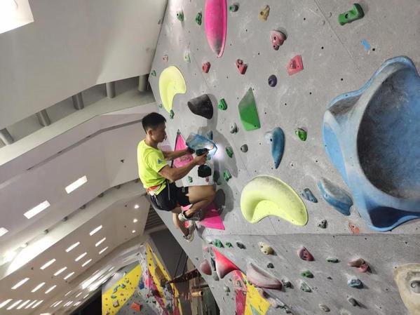 在衢州中等职业学校就读期间,方双龙的攀岩天赋被我校王俊舰老师敏锐捕捉。作为我校对接衢州中专攀岩队的技术指导教师,王俊舰发现这个少年在岩壁上展现出异于常人的身体协调性和爆发力。从那时起,王俊舰将方双龙纳入系统训练体系,手把手教授攀岩技艺,用“失误是岩壁给出的解题线索”鼓励他突破自我。正是这份专业与坚持,让他一次次重拾信心,迎难而上。在王俊舰的悉心指导下,方双龙的攀岩技术突飞猛进,先后在2017年浙江省青少年攀岩锦标赛、2018年浙江省攀岩锦标赛中斩获A组速度赛第五名和成人组速度赛第五名等成绩。2017年,他代表衢州市参加浙江省第三届体育大会攀岩比赛,获得青年组难度赛第八名。