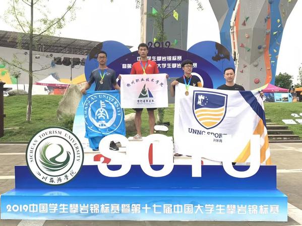 (方双龙,左2,代表衢职院参加中国大学生攀岩锦标赛)