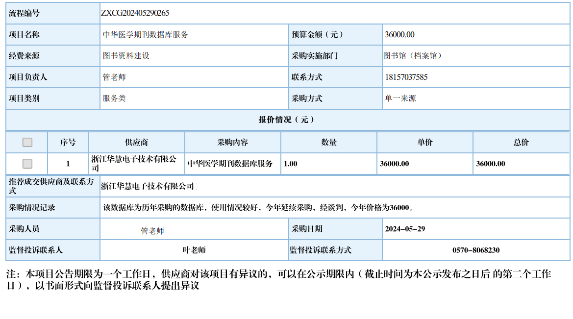 衢州职业技术学院中华医学期刊数据库服务自行采购信息公示