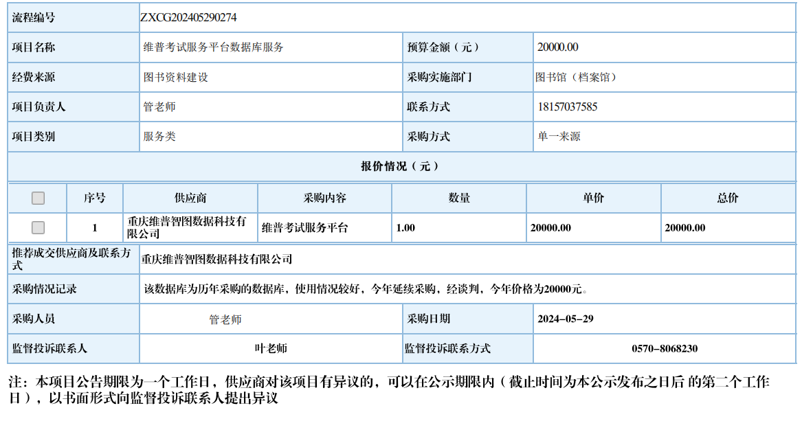 衢州职业技术学院维普考试服务平台数据库服务自行采购信息公示