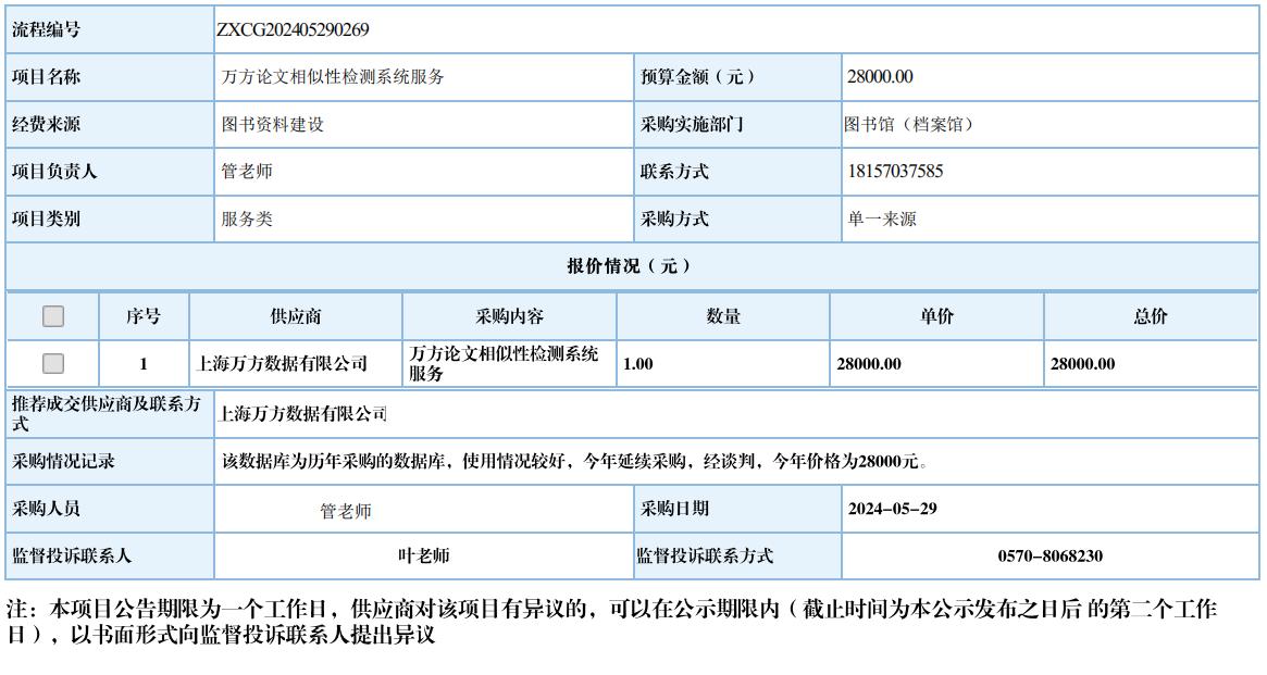 衢州职业技术学院万方论文相似性检测系统服务自行采购信息公示