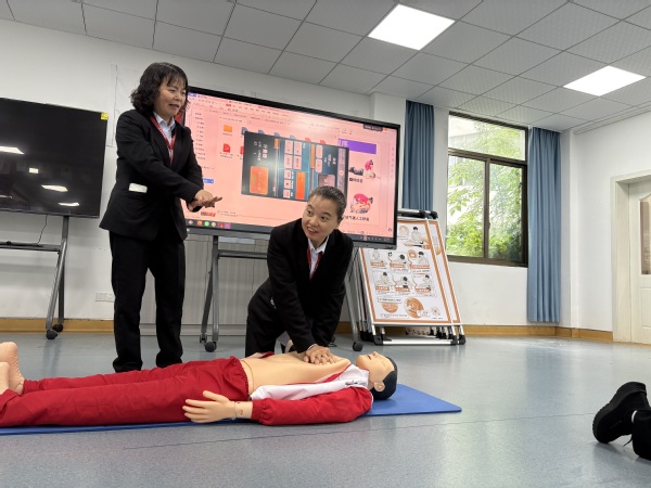 培训由医学院资深教师张沛情主讲,其采用沉浸式教学模式,将讲解、演示与实操紧密结合,让参训人员在生动的教学氛围中快速掌握急救技能。培训内容聚焦三大核心急救场景,针对性极强。包括海姆立克急救法,针对不同年龄群体(成人、儿童、婴幼儿)的异物梗阻情况,详细讲解站位、手势、施力角度等操作要点;心肺复苏(CPR)标准化流程,通过人体模型演示胸外按压的深度、频率及人工呼吸规范,强调黄金4分钟的抢救时效性;AED智能除颤设备操作,拆解设备启动、电极片贴放、语音提示响应等关键步骤,破除不敢用、不会用的心理障碍。
