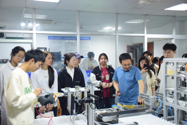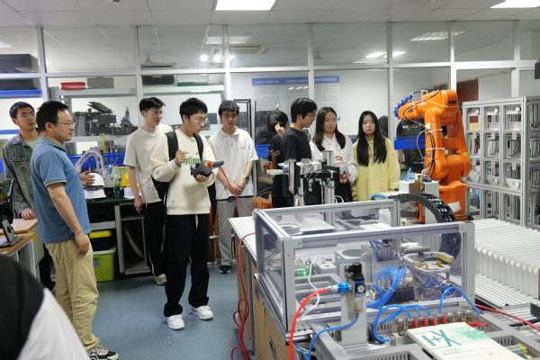 在机电工程学院,党员教师向发展对象展示了工业机器人的现代科技感。通过参观数控加工实训车间和机器人操作与运维等实训室,发展对象对“工业互联网”“智能制造”等概念有了更加直观的认知,对职业教育赋能制造强国战略有了更深入的思考。