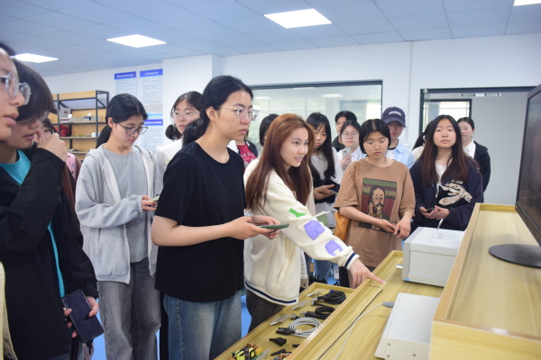 在信息工程学院,发展对象深深被实训室的模拟离散型企业真实生产过程的教学产线所吸引,通过实操演示发展对象详细了解真实生产过程的产品加工、装配、缺陷检测、入库和出库等环节,感受数智科技魅力。通过信工党建文化墙和师生荣誉榜的参观学习,让发展对象感受到信工师生在省级“双高”专业群建设彰显的“衢职先锋·红色数智”品牌力量。