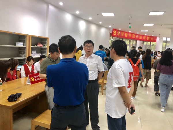 一大早,校党委书记崔戴飞、校长江爱民等校领导已到达现场,与新生及其家长亲切交流,介绍专业发展方向、就业趋势,深入学生宿舍、食堂,了解有关情况,并向辛勤工作在一线的师生表示亲切的慰问。