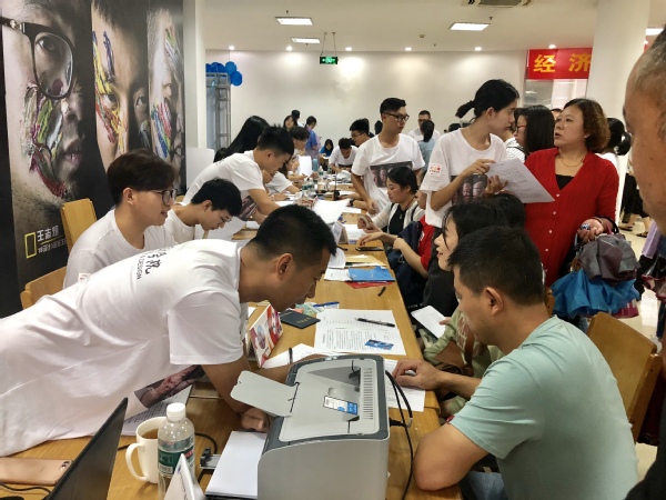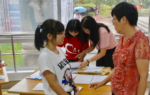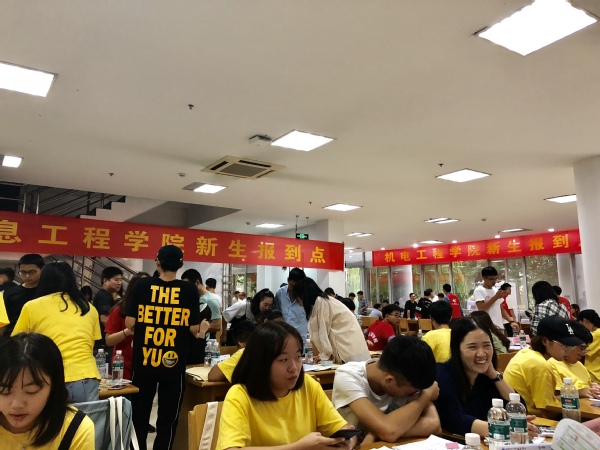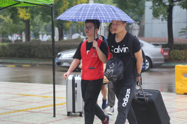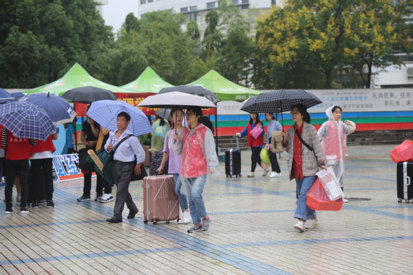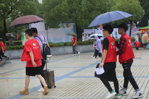 迎新工作如火如荼,到处都是忙碌的身影。在火车站、汽车站、校园各处设立的接待点,一张张热情的笑脸,一句句亲切的问候,一项项贴心的服务。一有车到站,新生和家长还没下车,身着统一服饰的志愿者顾不得雨淋,微笑着迎上去,“抢”下新生和家长手中沉重的行李,“你好”,“欢迎来到学校”,“一路辛苦了”。引导学生和家长有序报道、入住公寓、耐心解答疑惑、介绍学校基本情况,学长学姐们的热情周到的服务很快消除了新生们初来乍到的陌生感。