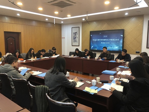 首先,工作室负责人蒋雪芬从建设目标、团队成员、工作计划及预期成效等几个方面介绍了工作室的建设方案。陈青为工作室进行了授牌,并肯定了工作室的选题和方案,同时他指出辅导员的工作有异于专任教师、其他管理岗等岗位,具有繁琐性和特殊性,学校一直在关注辅导员的成长和进步,为辅导员提供各种展示自我的平台,希望全校辅导员以此次工作室成立为契机,不断提高自我研究能力和工作能力,更好地开展学生教育培养工作。