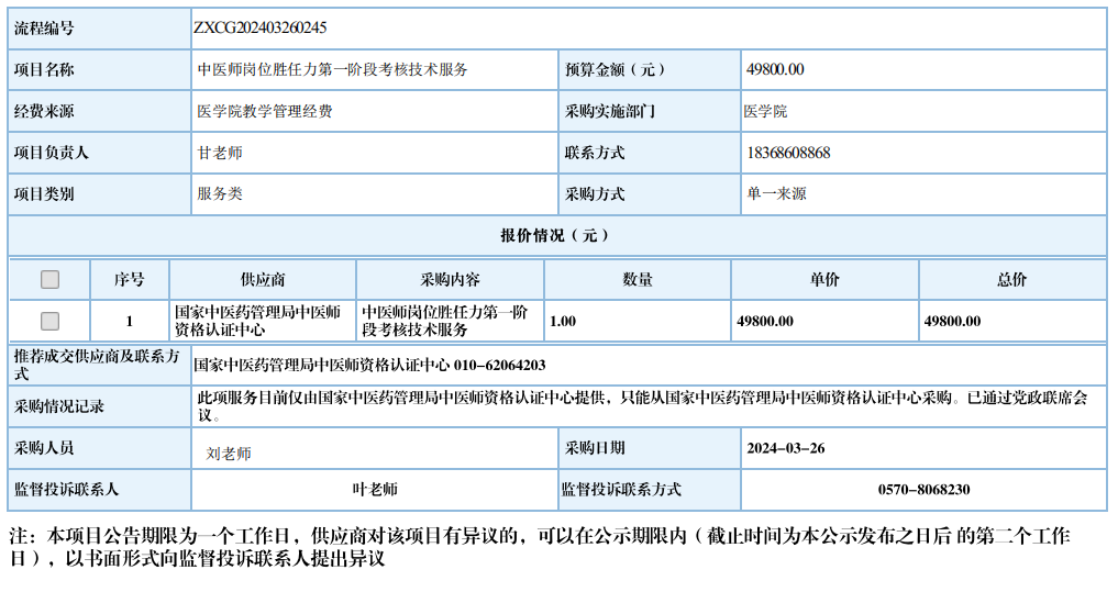 衢州职业技术学院中医师岗位胜任力第一阶段考核技术服务自行采购信息公示