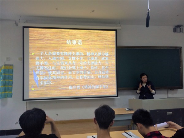 周老师指出大学内可以学习专业知识和非专业知识两部分,大学生进入学生干部队伍,主要是为了学习非专业知识。非专业知识中最重要的一点是要有精神支撑。通过列举司马迁、杜甫等名人榜样,提出大学生应该在大学期间努力提升个人文学素养,从中汲取精神支撑的养料,做一个有牢固精神支撑的合格大学生。(学生处 吴春红)