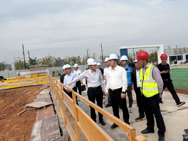 邵潘锋一行实地走访调研了医学实训楼、产教融合中心建筑组团等施工现场,详细了解新校区项目用地、投资、建设规划、功能布局、设计理念以及全面开工建设等方面的情况。