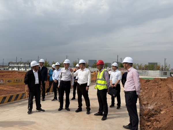 4月7日下午,副市长邵潘锋一行赴新校区项目现场调研项目推进情况,校党委书记徐须实,党委委员、副校长余建军,市建设中心主任姜平等陪同。