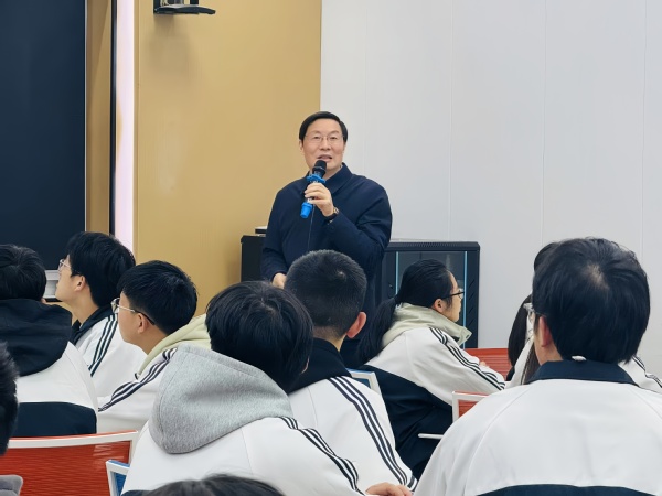 徐须实以《科技创新引领民族复兴——我国的科技创新之路》为题,以2025年寒假最火爆的事件,《哪吒2》风靡全球,人形机器人亮相春晚,DeepSeek大模型领跑全球开篇,围绕“何为科技创新?”“科技创新,中国何为?”“科技强国,我们何为?”这三个问题展开,从历史和现实两个维度,讲述了第一颗原子弹试爆成功,神舟飞船飞出“中国高度”,高铁列车跑出“中国速度”等生动案例、感人故事、具体数据,回顾了中国在不同工业革命阶段从默默“跟跑”,艰难“并跑”到勇于“领跑”的巨大转变,阐释了中国科技创新引领制造业高质量发展的时代蝶变,揭示了科技创新在推动国家发展和民族复兴中的核心作用,引发现场师生的强烈共鸣。