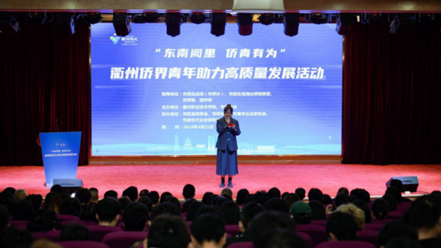 4月21日,“东南阙里 侨青有为”衢州侨界青年助力高质量发展活动在衢州职业技术学院举行,来自衢州市留联会、欧美同学会、侨商会、青年企业家协会、新生代企业家联谊会等社团会员,各县(市、区)侨联、各侨(留)联负责人,以及衢州职业技术学院师生代表等约300人参加。