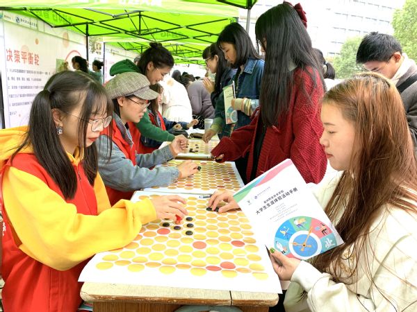 近日,衢州职业技术学院举办大学生生涯体验活动,以人生格子铺、职业轮盘、决策平衡轮等11个游戏互动的形式,让学生亲身体验从业工作状态,帮助同学们树立生涯规划意识,引导他们正确认知自我、开阔视野、了解社会、增长才干。