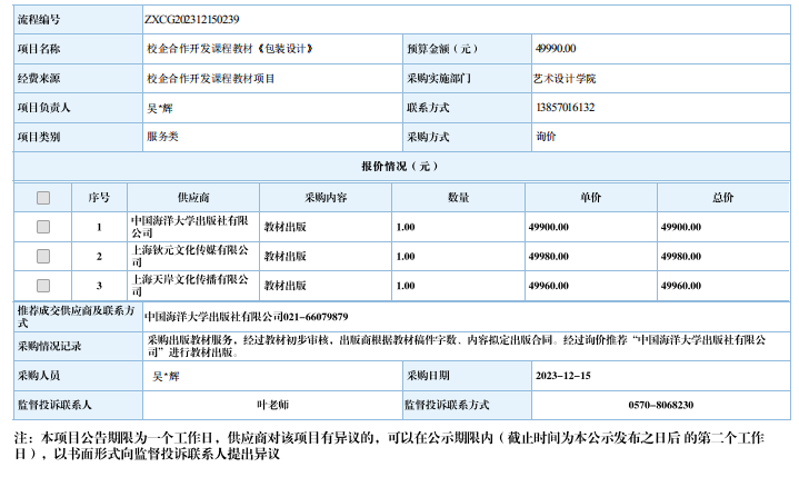 衢州职业技术学院校企合作开发课程教材《包装设计》自行采购信息公示
