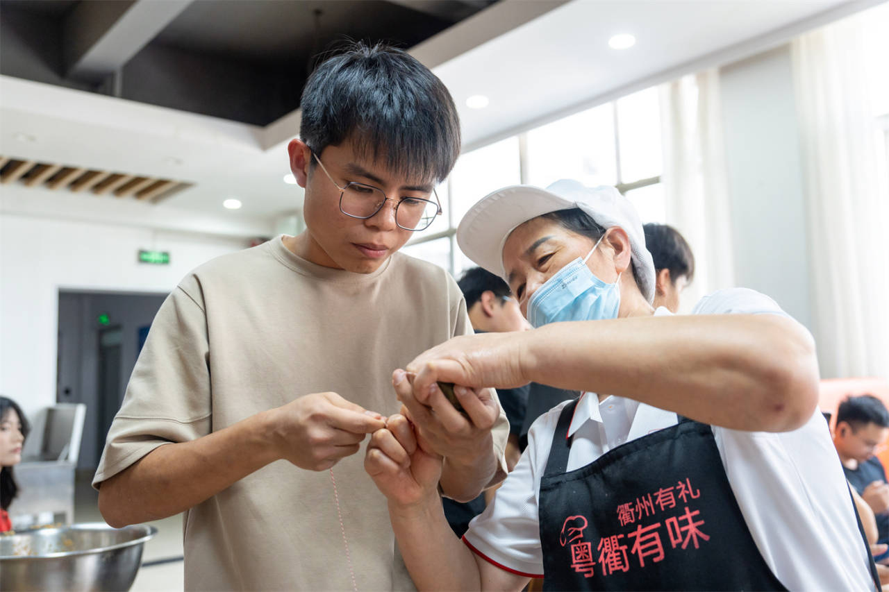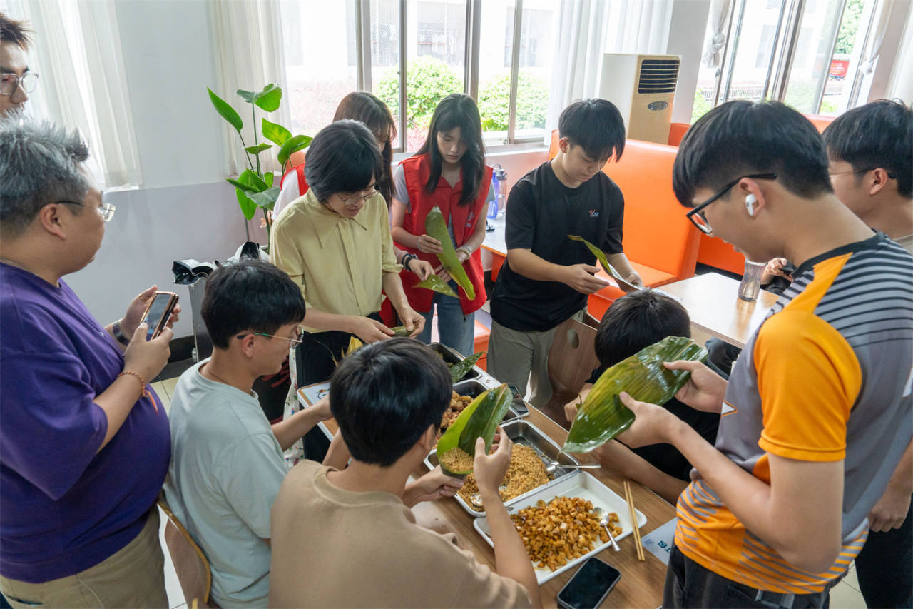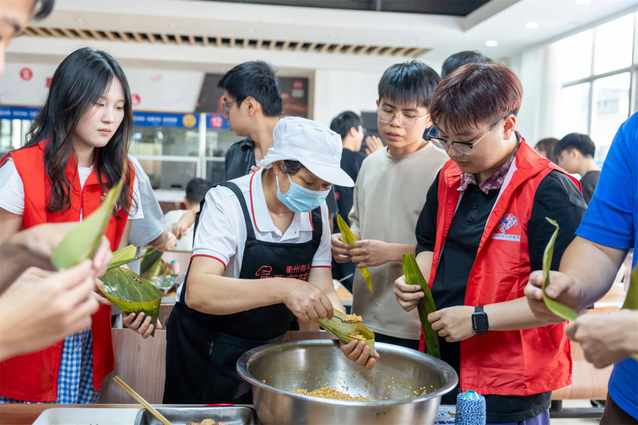 5月30日,衢州职业技术学院食堂里,一群来自马来西亚的华人留学生和衢职院的同学们一起包粽子、过端午。留学生们和中国同学一起学习包粽子,虽然包得奇形怪状、大小不一,引得大家哈哈大笑,但是有趣的活动增进了两国同学的友谊,让留学生们在中国度过了一个有意义的端午佳节。