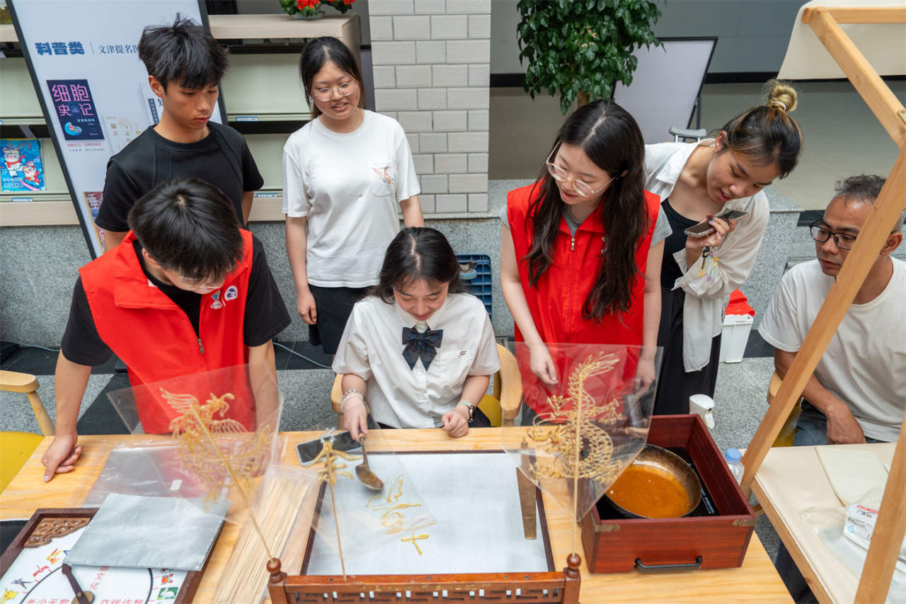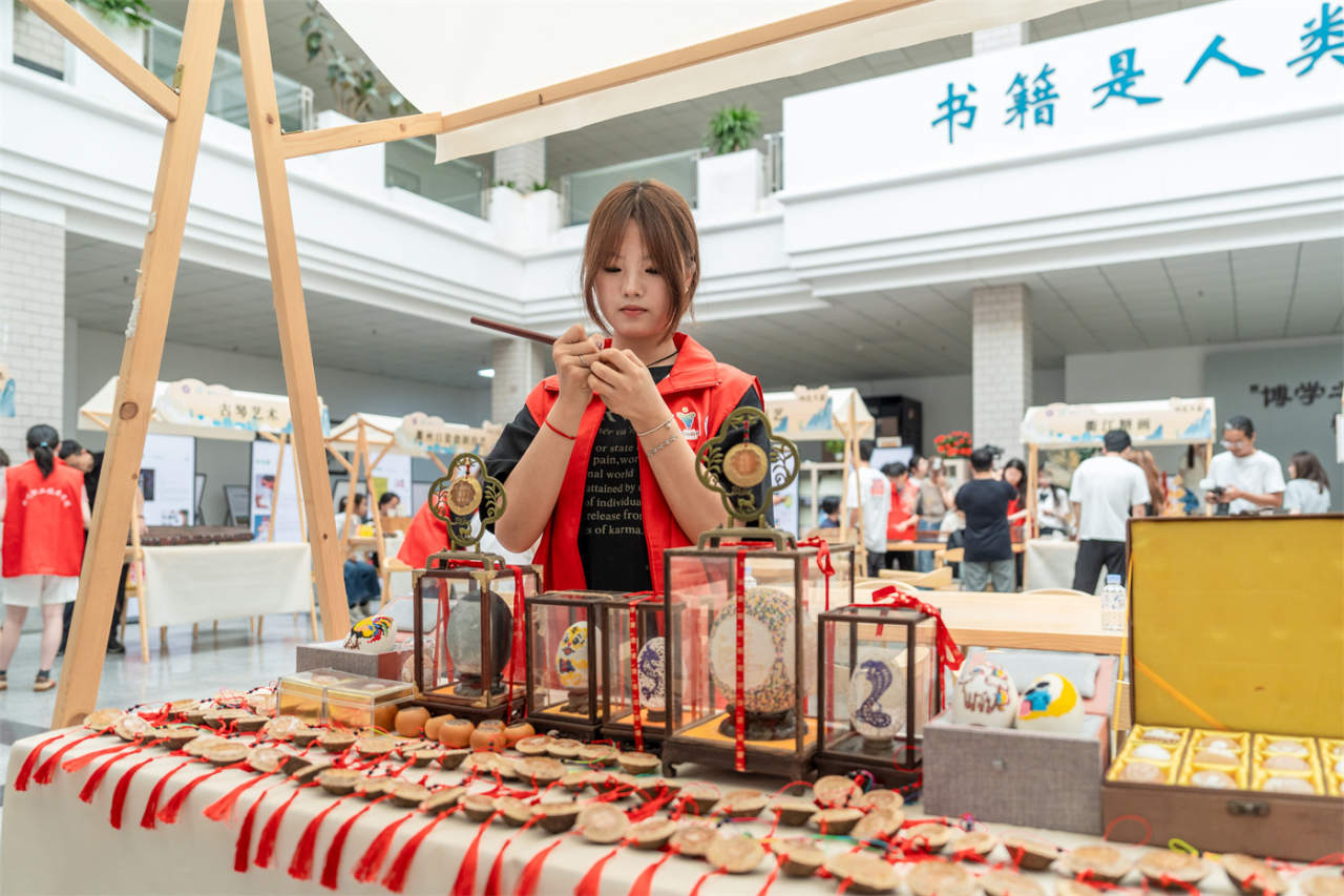 5月23日,由衢州市文化馆主办的非遗进校园系列活动来到了衢州职业技术学院,众多非遗传承人带来了编绳、蛋雕、竹刻、糖画等各种非遗项目,有趣的技艺吸引了许多学生前来体验,亲身感受了传统非遗的魅力。