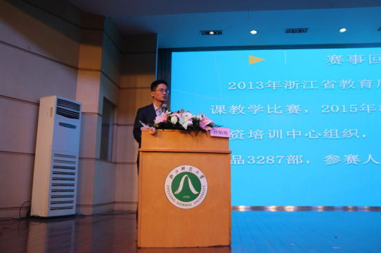 浙江省高等学校师资培训中心副主任孙炳海教授对2018年微课比赛方案作了简要解读,重点分析了今年微课赛事的调整之处和比赛作品的具体要求。