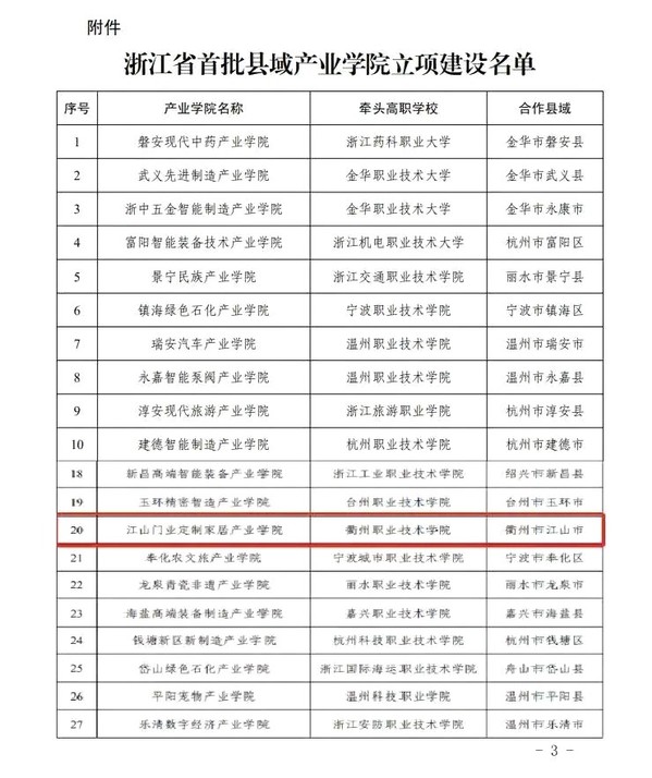 近日,省教育厅公布首批县域产业学院立项建设名单。我校申报的江山门业定制家居产业学院成功立项,标志着学校在服务区域经济、推动产业转型升级方面迈出了坚实的一步。