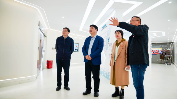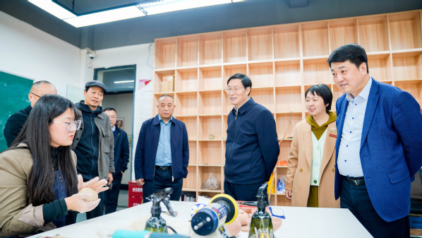 何瑶伟一行参观了共富学院、 工业互联网 实训中心、医护康养实训中心、数字创意设计实训中心、经济管理学院实训中心。