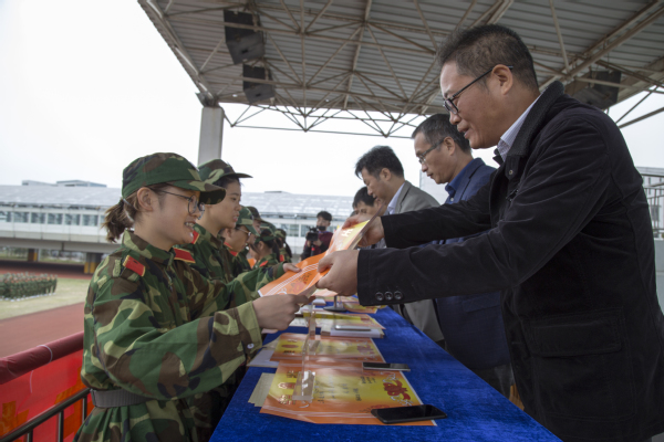 校长江爱民向支持我校军训工作的衢州武警支队赠送了锦旗,感谢他们对我校军训工作的大力支持与帮助。