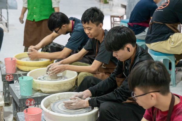 5月5日,一群正在衢州职业技术学院学习的马来西亚留学生来到衢州市莹白瓷陶瓷研究院,在工作人员的讲解下,了解了衢州白瓷的知识和历史,并通过动手制作瓷器,亲身感受了这一中华传统非遗项目的魅力。