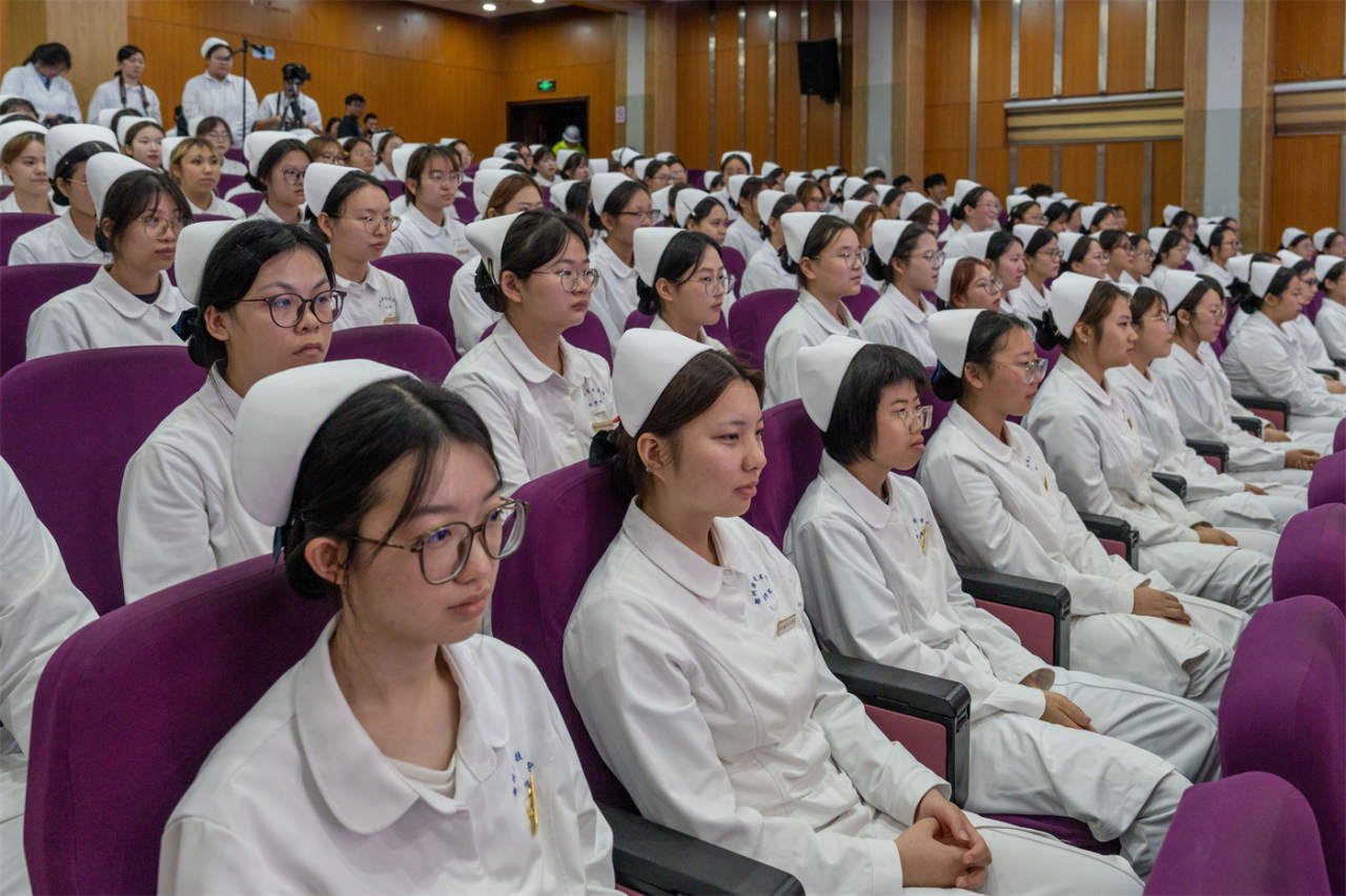 5月8日,在第114个“5·12”国际护士节即将来临之际,衢州职业技术学院医学院举行护士加冕仪式。432名即将走上实习岗位的护理、助产专业的同学,接过了前辈手中的蜡烛,戴上了圣洁的燕尾帽。在坚定的宣誓声中,同学们立志在未来的职业生涯中刻苦学习,努力奋斗,为患者的健康和幸福贡献自己的力量。