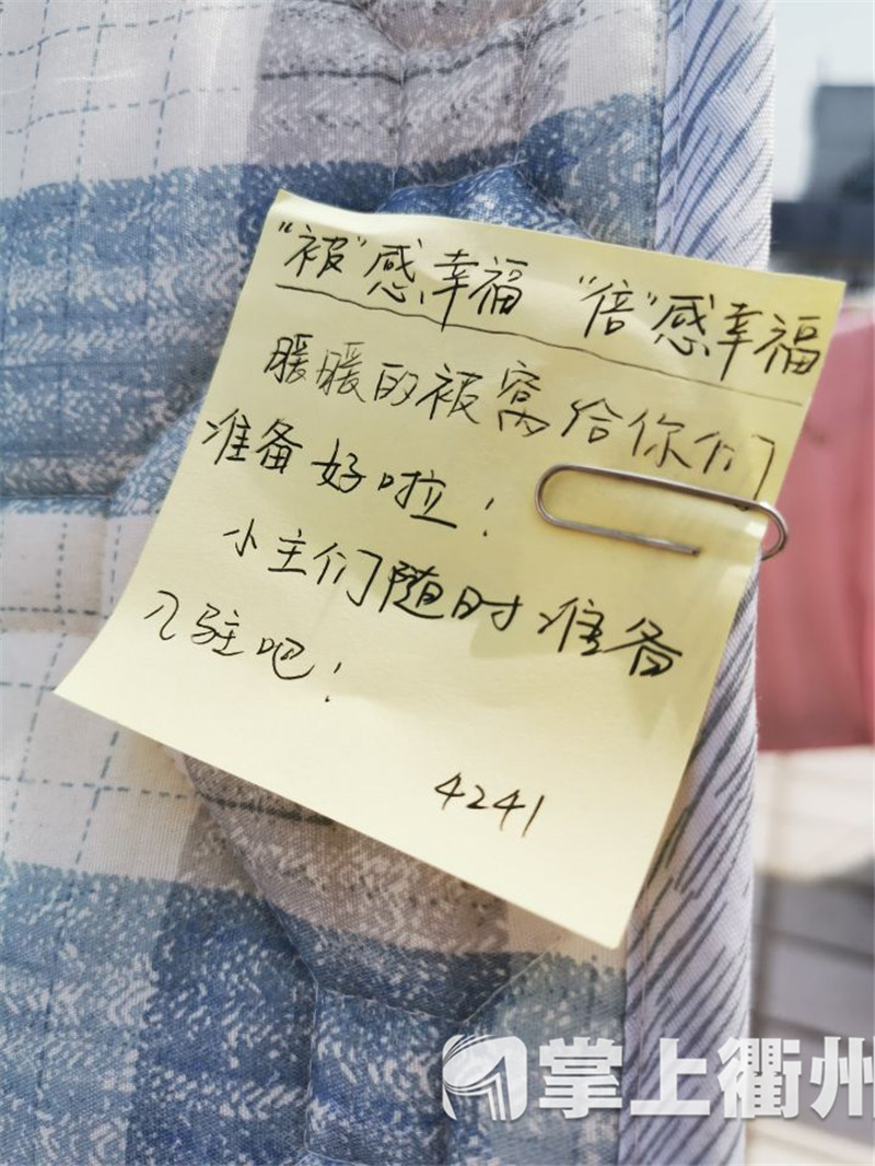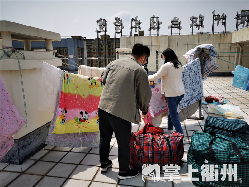 据了解,除了帮学生晒被子,衢职院还进行了多项返校准备工作,包括全面消杀、给地面粘贴排队距离标识、准备测温防疫物资、安排志愿者岗位以及复学实地演练等。“希望以一个安全又温暖的环境来迎接同学们‘回家’!”老师们说。