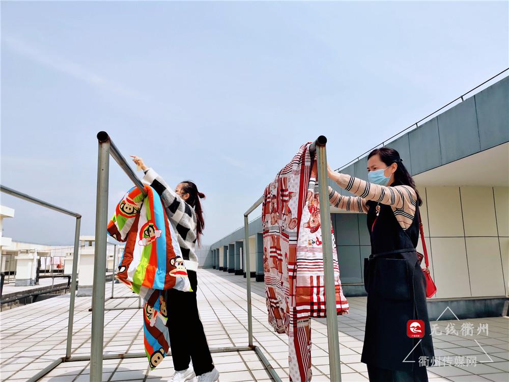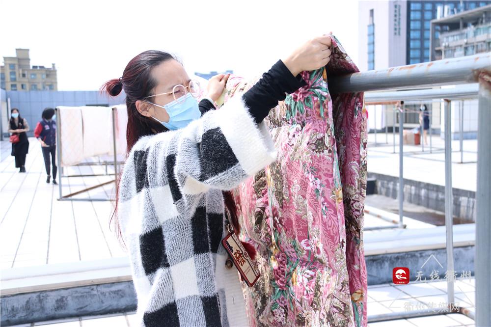 学院表示,接下来天气晴好的话,他们还会组织教师分批次将学生被褥全部拿出晾晒。