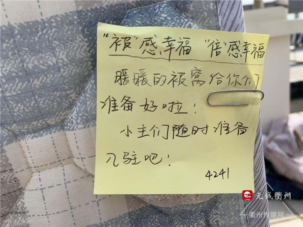 老师们细心地在每一条被子上面写好宿舍号、床位号等标识。
