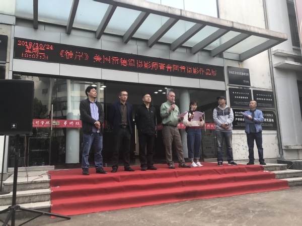 叶云龙致开幕词,就查普先生受邀来校艺术文化交流的整体情况作了说明,查普先生衢州艺术之旅,在衢州短短一个月就创作大量的摄影作品。他走遍衢州大街小巷,用心去体察衢州良好的生活状态和精神风貌。他采风览景,去感验衢州自然风光和风土人情,并把真切体验融入到他的摄影创作中,以画面的呈现方式来记录,诠释了对生活的热爱和对摄影艺术态度与追求,感受到一位七旬老人的年轻与活力。展览为大家提供了很好的交流学习平台。