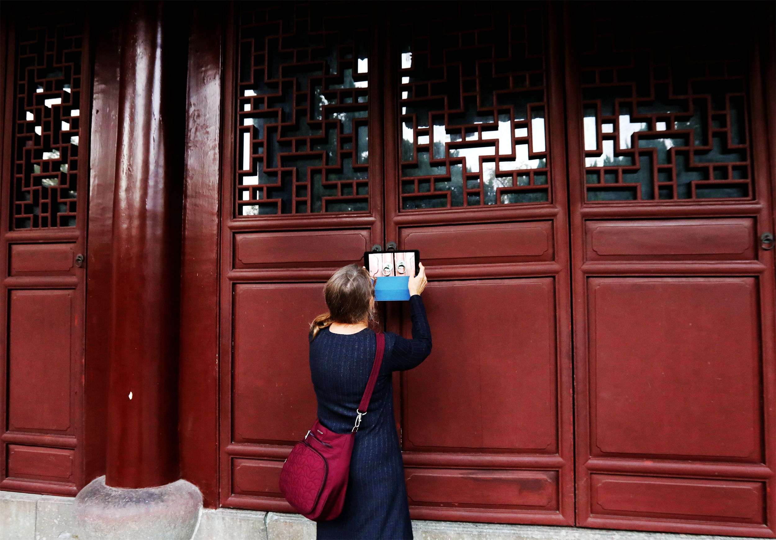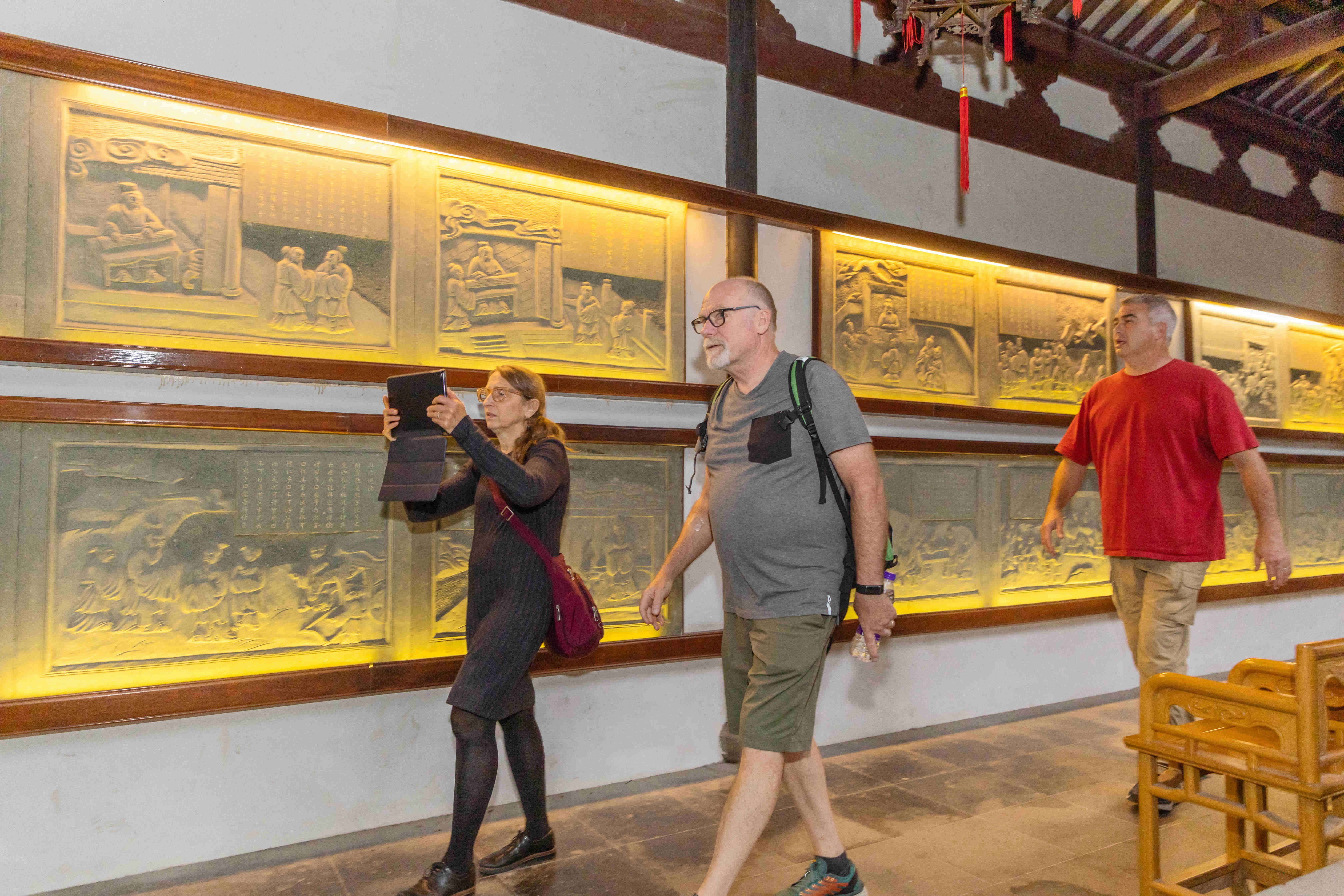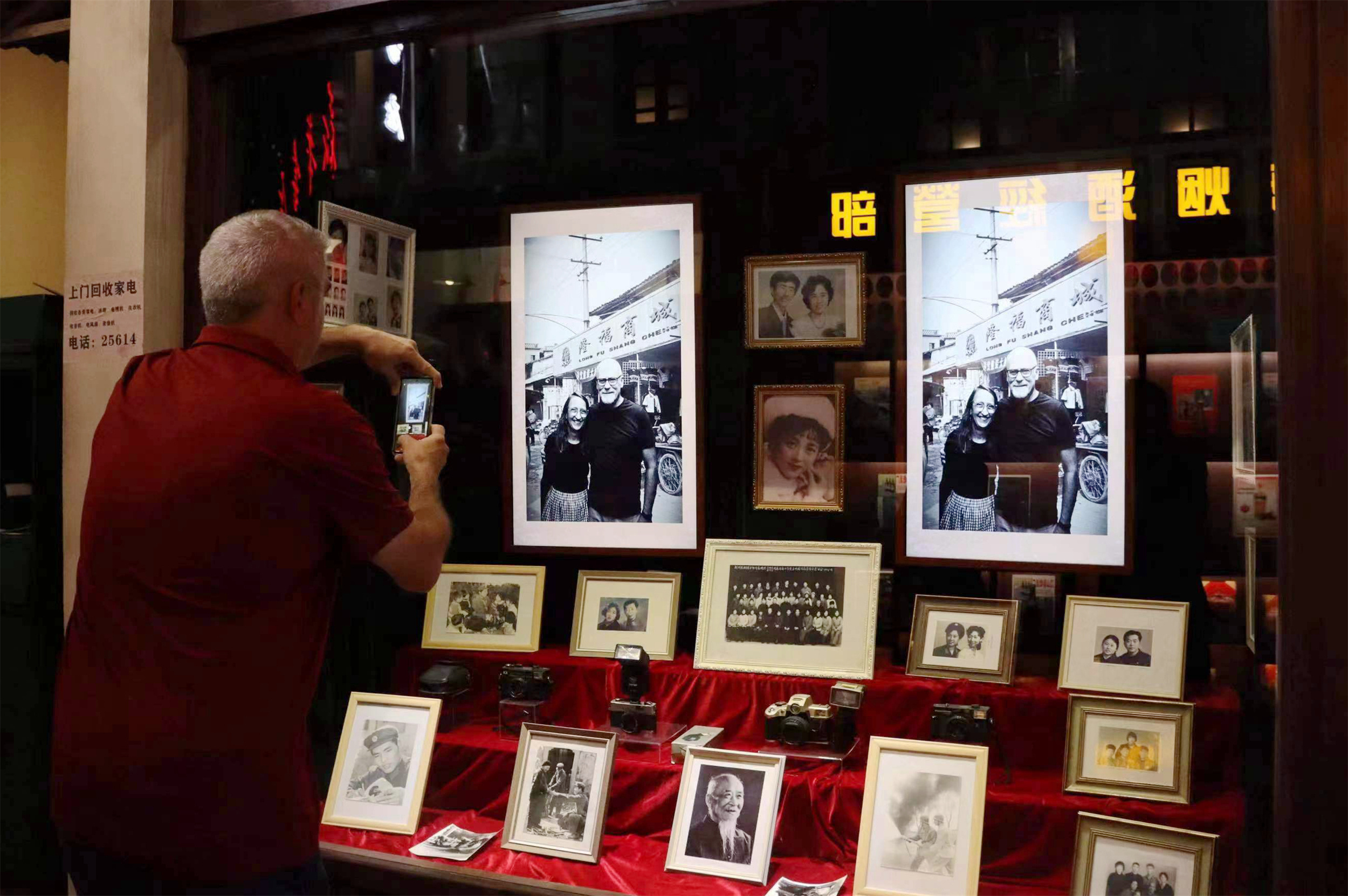 在衢州市城市展示馆,雷柯华夫妻俩将自己融入了老衢州风情中。