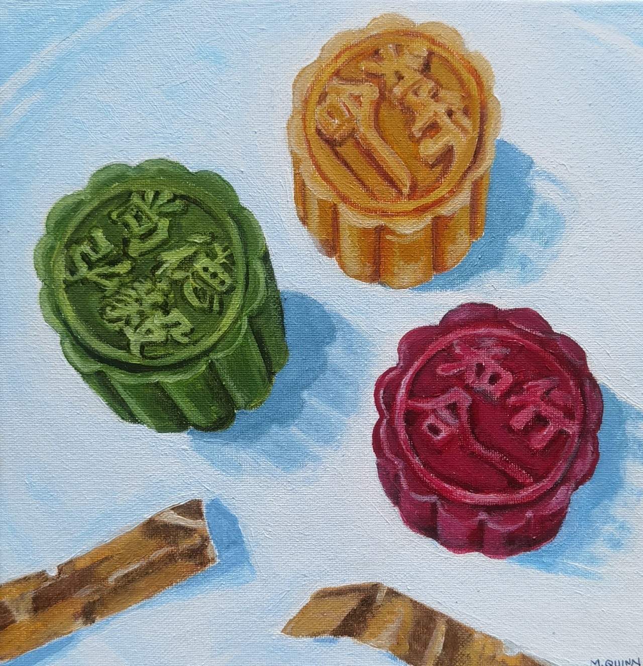 马特以中国月饼、衢州职业技术学院校训为元素创作的作品。