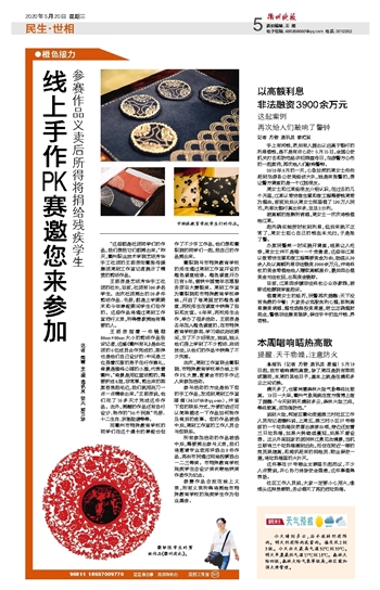 参赛作品会放在线上义卖,所有义卖所得将捐给市特殊教育学校的残疾学生作为创业基金。