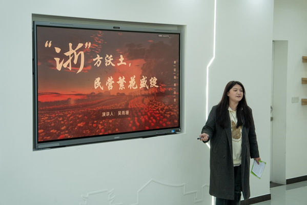 00新时代理论宣讲团成员吴雨珊在《“浙”方沃土 民营繁花盛绽》中坚定地说:“作为新时代的大学生,浙江精神鼓舞着我们在学习中求真务实,在生活中明礼诚信,在未来的事业发展中保持开放图强的状态……让我们接过浙江精神的火炬,让浙江精神绽放更耀眼的光芒!”