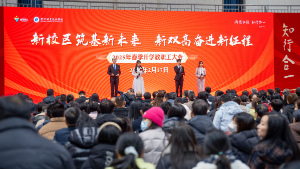“新校区筑基新未来 新双高奋进新征程”,2月17日下午,我校召开2025年春季开学教职工大会,贯彻落实省、市“新春第一会”精神,全面部署学校新一年的工作。党委书记徐须实出席并作“昂扬斗志、实干争先,奋力谱写高质量发展新篇章”主题讲话。党委副书记、校长吕延文部署2025年重点工作,党委副书记何百通,党委委员、纪委书记方焕云,党委委员、副校长余建军、徐浪静、姚水洪,党委委员、宣传部部长孔庆红,党委委员、组织部部长周帅出席,全校教职员工参加。
