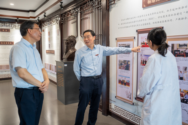 陈根芳一行调研了共富学院、工业互联网实训中心、四省边际大健康公共实训中心,详细了解我校办学特色、产教融合、服务地方发展及“新双高”建设等方面情况。