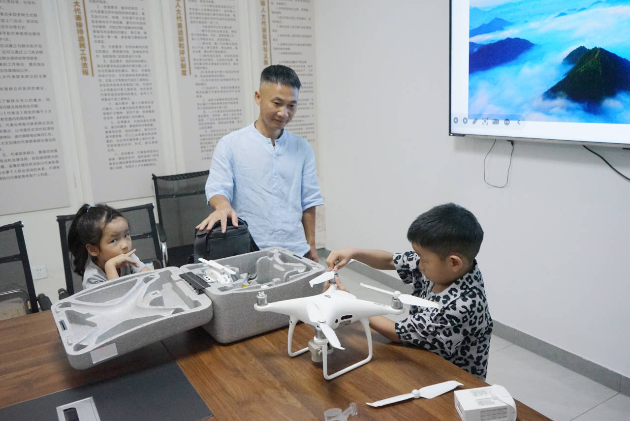孩子们通过无人机飞行体验,鸟瞰美丽的家乡