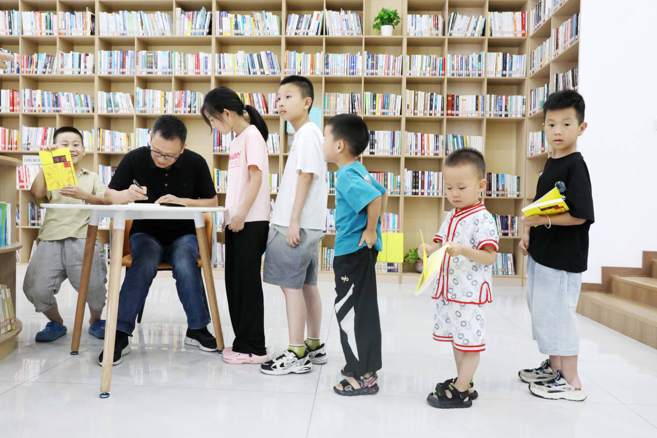 衢州市新闻传媒中心文学编辑、衢州市作家协会副主席兼秘书长陈炜应邀主讲儿童文学讲座,还给每名孩子送上自己的签名著作《插班生》。