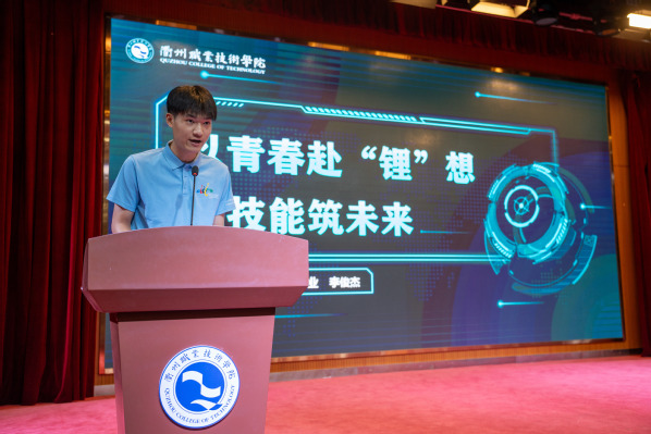 学院24级优秀学子李俊杰也上台分享经验,他讲述了自己与团队在世界职业院校技能大赛中奋力拼搏、斩获金牌的历程,并从“勇敢尝试新事物”“专注专业学业”“积极融入集体”“坚定理想信念”四个方面为学弟学妹们提出建议,强调掌握实用技能对未来发展的重要性。